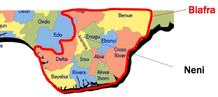 Karte vom Südosten Nigerias mit den Staaten die zur Biafra Region gehören: